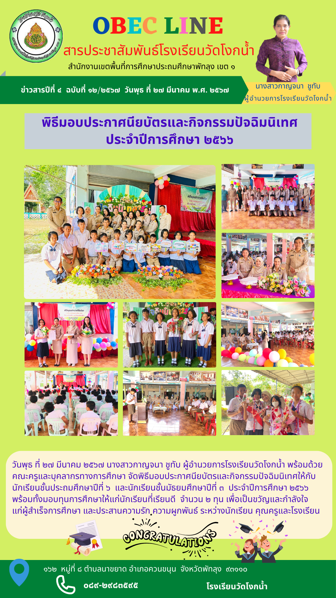 พิธีมอบประกาศนิยบัตรและกิจกรรมปัจฉิมนิเทศ ปีการศึกษา2566