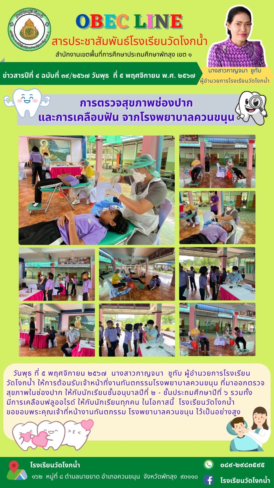 การตรวจสุขภาพช่องปาก และการเคลือบฟัน จากโรงพยาบาลควนขนุน