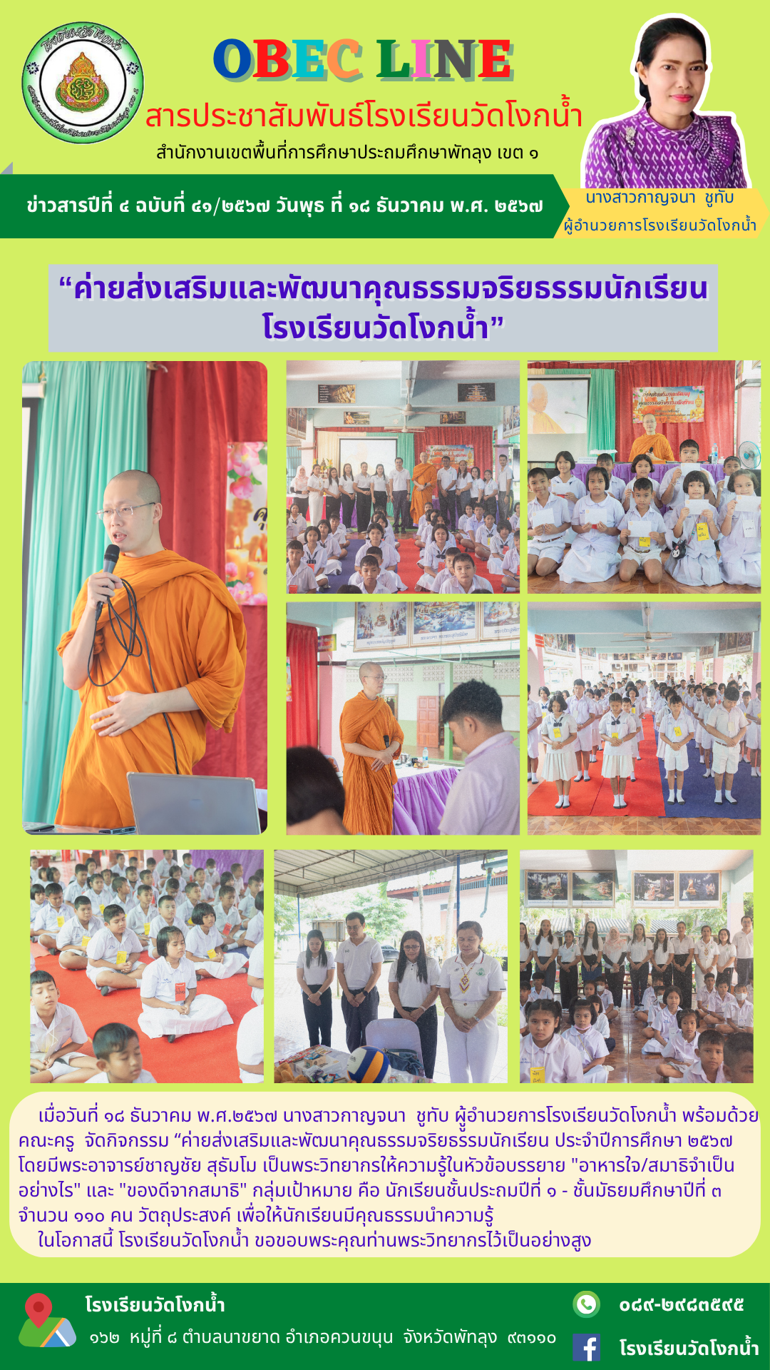 ค่ายส่งเสริมและพัฒนาคุณธรรมจริยธรรมนักเรียน โรงเรียนวัดโงกน้ำ