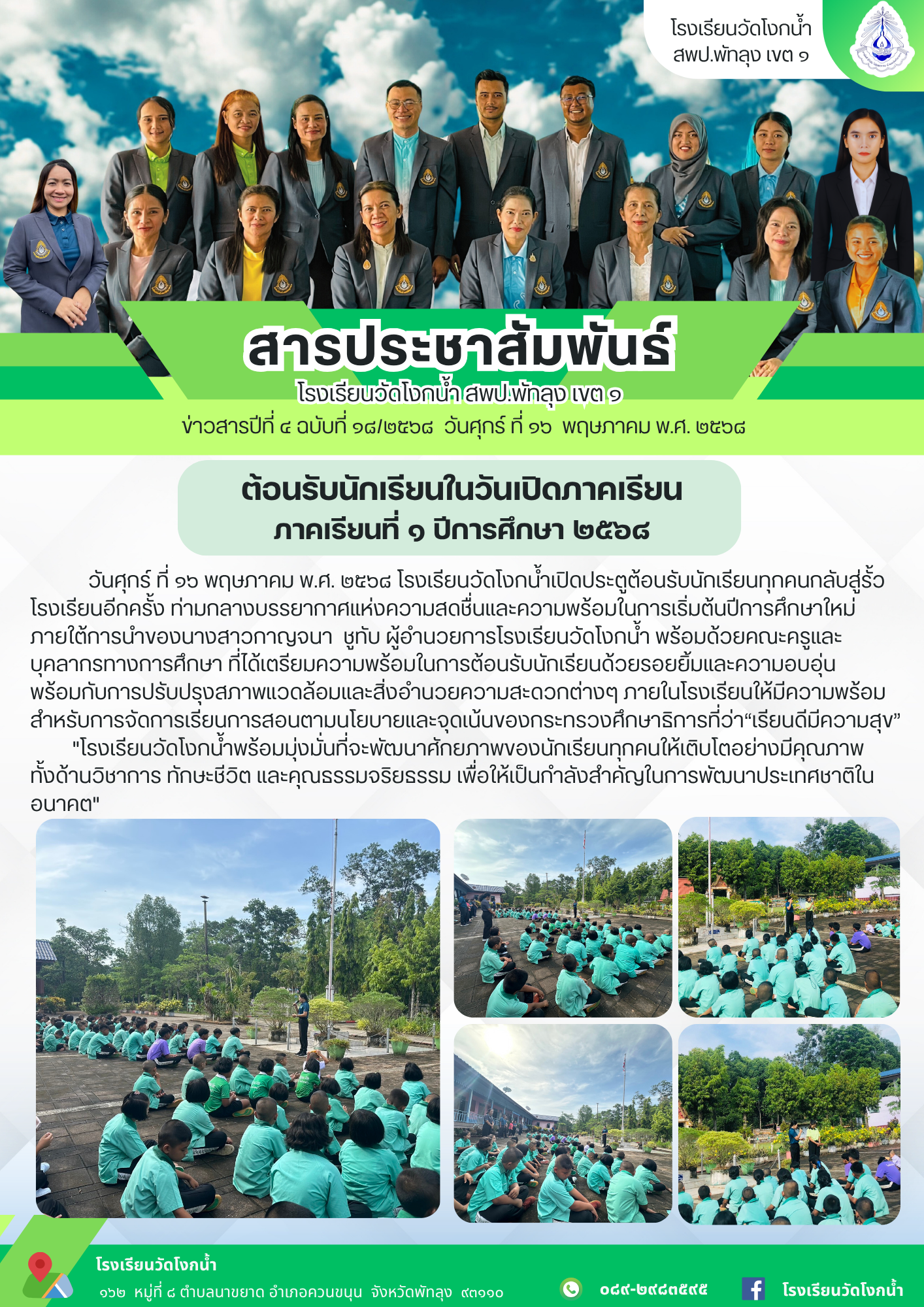ต้อนรับนักเรียนในวันเปิดภาคเรียน ภาคเรียนที่ ๑ ปีการศึกษา ๒๕๖๘